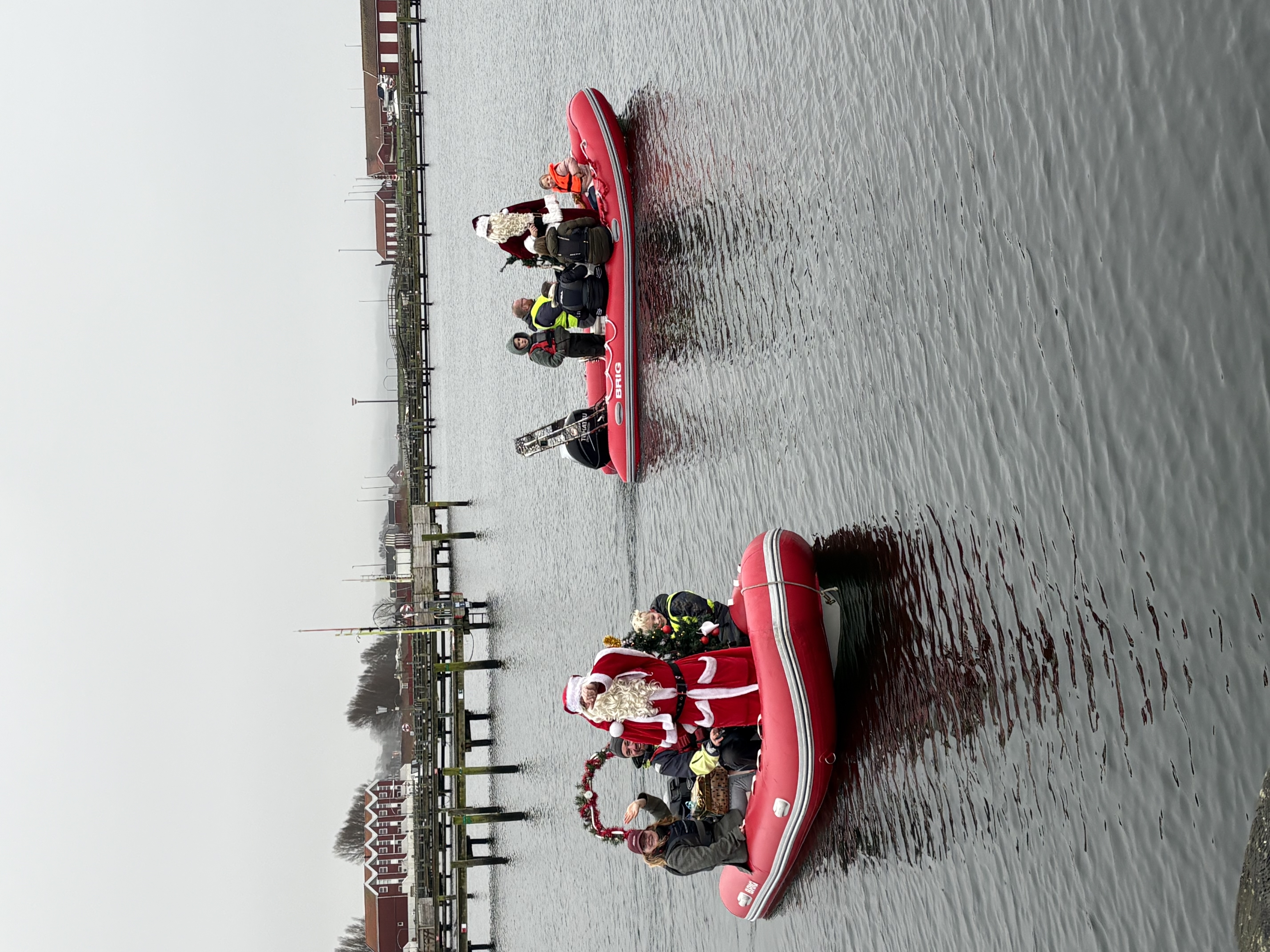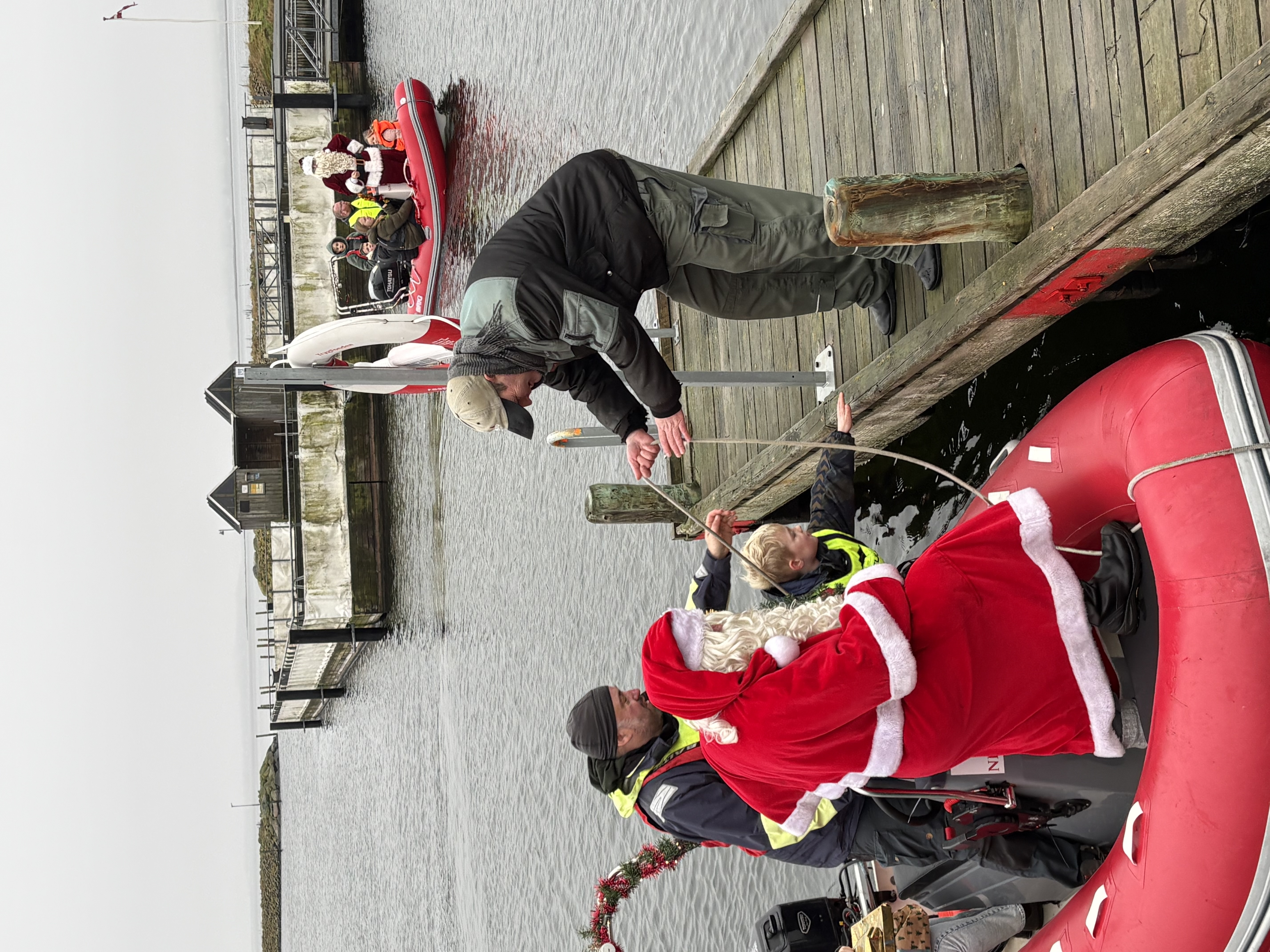 Så ankom julemandens julemændshjælpere til Nibe Havn - fornemt hentet og bragt af ungdomsafdelingen.